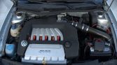 The 3.2-liter narrow-angle VR6 features four valves per cylinder and was rated at 240 horsepower and 236 lb-ft of torque when new. A carbon fiber cold air intake was installed during previous ownership. An oil change was carried out in March 2021.