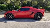 This 2006 Lotus Elise is finished in Ardent Red over a black interior, and power is provided by a 1.8-liter inline-four paired with a six-speed manual transaxle. Equipment includes a removable black soft top and a color-matched hardtop, air conditioning, a push-button start, and four-wheel disc brakes with cross-drilled rotors. Replacement tires were mounted, the engine computer received a software update, and a recall was performed on an oil cooler line in 2020.
