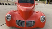 This Willys coupe street rod was built by Fulk’s Rod Shop of Sandyville, West Virginia, utilizing a boxed tube frame and a 1940 Willys Americar-style steel-reinforced fiberglass body. The car is finished in orange over tan leather upholstery and is powered by a 502ci GM V8 paired with a three-speed automatic transmission. Equipment includes Vintage Air air conditioning, VDO instrumentation, a tilting Ididit steering column, a Sony CD stereo, Billet Specialties wheels, and disc brakes.