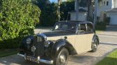 Just over 5,200 Mark VI Bentleys were produced between 1946 and 1952. This example features steel bodywork, a 120″ wheelbase, and a two-tone black and cream color scheme with red pinstriping. Semaphore turn indicators are integrated into the B-pillars, and the seller replaced the lamps and bulbs.