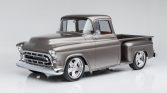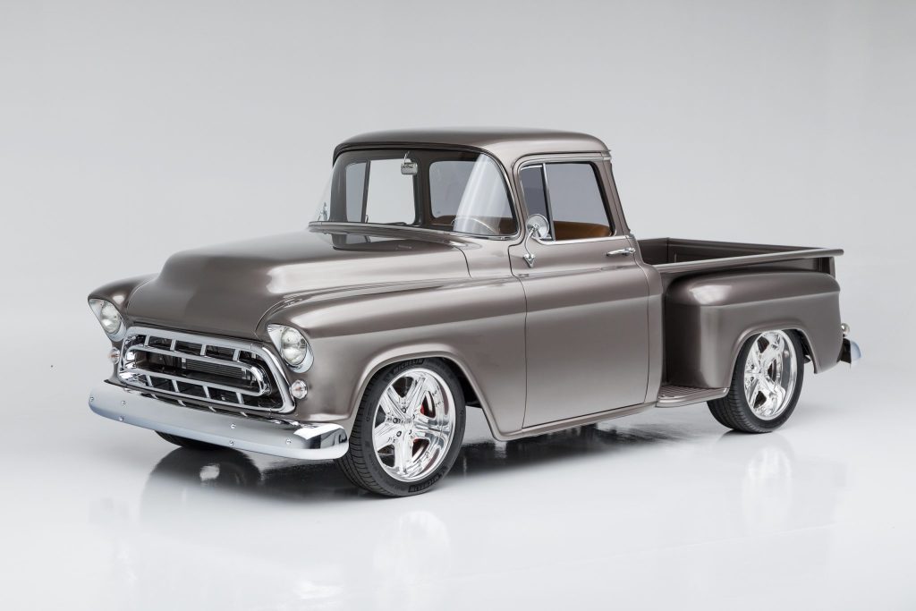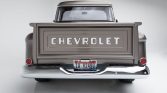 This 1955 GMC 100 pickup is a refurbished and modified example that was acquired by the current owner in October 2020. The truck is powered by a 502ci V8 with electronic fuel injection paired with a Hughes-built 700R4 four-speed automatic transmission and has been refinished in Magnum Moca Metallic over custom saddle brown leather. Features include a tailgate and front sheet metal from a 1957 Chevrolet, chrome 20″ Foose wheels, four-wheel power disc brakes, a 4-link rear…