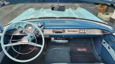 Steel 14″ steel wheels wear faux knock-off covers and are mounted with whitewall tires. The car has power steering, and braking is provided by front and rear drums.
