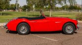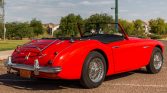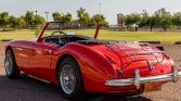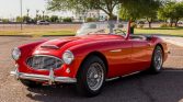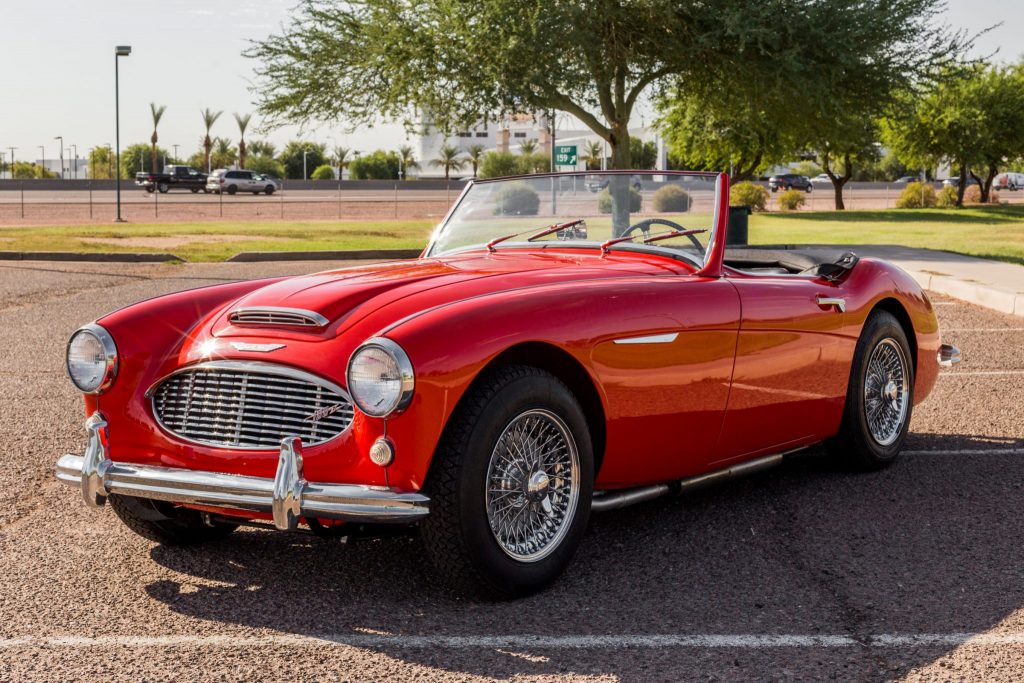 This 1958 Austin-Healey 100-6 is a four-seat BN4 roadster that was acquired by the seller in 1984 and subsequently refurbished between 2001 and 2004. The car is finished in red over black vinyl and is powered by a 2.6-liter inline-six paired with a four-speed manual gearbox with overdrive. Equipment includes a black soft top, tonneau cover, luggage rack, chrome bumpers, and wire wheels. Service in preparation for sale consisted of replacing seals, freeze plugs, and the thermostat as well as the engine mounts and transmission mounts.