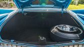 Delivered from the factory in Georgian Blue with a Dover White top (24-12), the pillarless hardtop body is said to have been repainted in the 1990s. Equipment includes chrome bumpers and trim, fender skirts, a single-row rear grille, upright fins, and dual-bullet-style taillights.