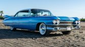 This 1959 Cadillac Series 62 six-window hardtop sedan was signed by and used to transport boxer Muhammad Ali and his family around the Louisville, Kentucky area in the mid-1990s while the vehicle was owned by Ali’s friend and assistant, Frank Sadlo. The car is finished in blue with a white roof over blue and black upholstery, and power comes from a 390ci V8 paired with a four-speed automatic transmission. Equipment includes power-assisted brakes, power steering, wheel covers, whitewall…