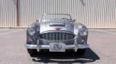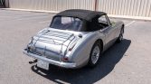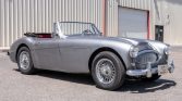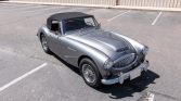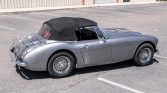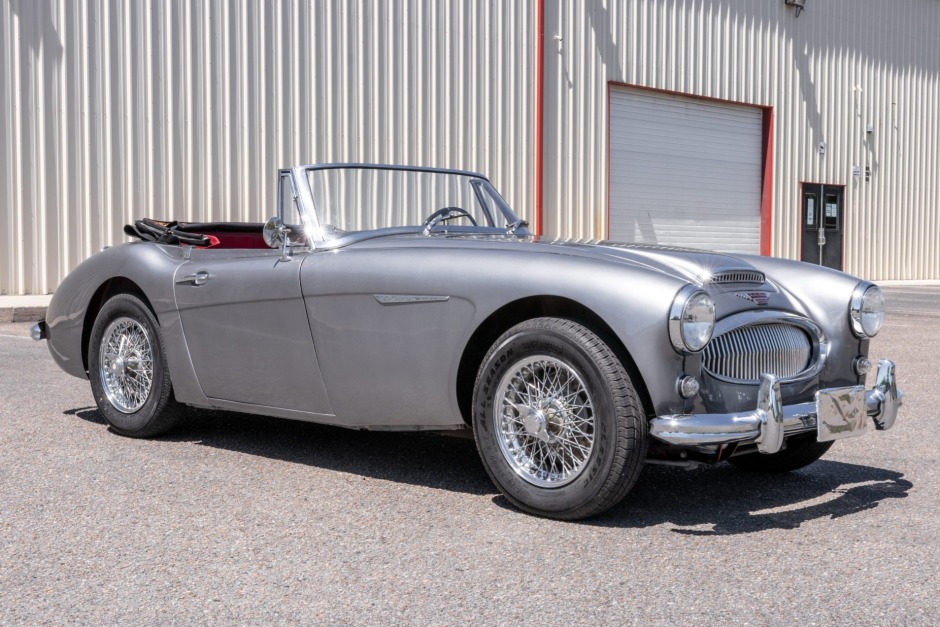 This 1963 Austin-Healey 3000 BJ7 Mk II is a 2+2 convertible that was acquired by the seller and her late husband in 1984. Finished in silver over red upholstery, it is powered by a 2.9-liter inline-six paired with a four-speed manual transmission with overdrive. Equipment includes a black convertible soft top, door-mounted mirrors, front disc brakes, a rear luggage rack, and chrome-finished 15″ knock-off wire wheels. Maintenance in preparation for the sale included a brake service, an oil change, and replacement of a clutch line.