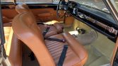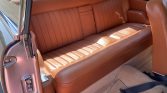 The seats and door panels are upholstered in brown leather, and the floors are lined with off-white carpeting. Features include a Becker Europa II AM/FM push-button radio, a lockable glovebox, and lap belts for the front-seat occupants.