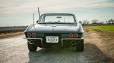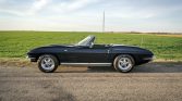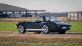 This 1964 Chevrolet Corvette convertible is finished in blue over blue upholstery and powered by a numbers-matching 327ci V8 mated to a Muncie four-speed manual transmission and a Positraction rear axle. Equipment includes a removable color-matched hardtop, a white soft top, chrome 15″ Cragar alloy wheels, power-assisted brakes and steering, an Edelbrock four-barrel carburetor and intake manifold, a Delco push-button AM/FM radio, and aftermarket speakers.