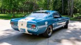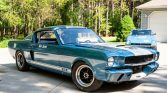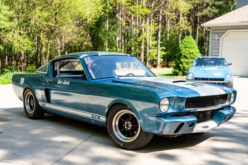 This 1965 Ford Mustang fastback was modified as a Shelby GT350R tribute under prior ownership. Refinished in blue with white stripes over a stripped interior with fixed-back bucket seats, the car is powered by a modified 347ci V8 paired with a four-speed Richmond manual transmission with straight-cut gears. Other equipment includes a 9″ rear axle, disc brakes, 15″ wheels, aftermarket suspension, side-exit exhaust, a roll cage, racing harnesses, a fire-suppression system, AutoMeter gauges, a vented rear window,…