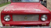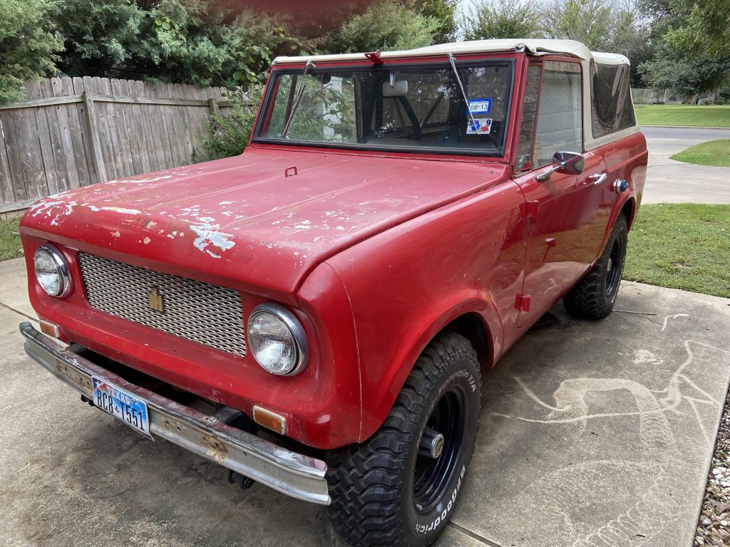 This 1965 International Harvester Scout 80 is finished in red over beige upholstery, and the 152ci inline-four, three-speed manual transmission, and dual-range transfer case are said to have been overhauled under current ownership. Features include a white soft top, 15″ wheels with 31″ tires, a Painless Wiring harness, and a locking center console with a Clarion stereo. The truck has been stored for the better part of a decade, and the fuel system, suspension, brakes, and other areas will require attention before it can be driven.