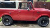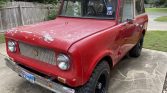 This 1965 International Harvester Scout 80 is finished in red over beige upholstery, and the 152ci inline-four, three-speed manual transmission, and dual-range transfer case are said to have been overhauled under current ownership. Features include a white soft top, 15″ wheels with 31″ tires, a Painless Wiring harness, and a locking center console with a Clarion stereo. The truck has been stored for the better part of a decade, and the fuel system, suspension, brakes, and other…
