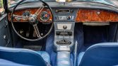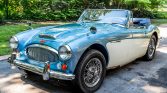 This 1967 Austin-Healey 3000 BJ8 Mk III was acquired by the seller in 1993 and was reportedly refurbished in the early 2000s by Healey Werks of Lawton, Iowa. The car is finished in blue and white over blue leather and is powered by a 2.9-liter inline-six paired with a four-speed manual transmission with overdrive. Features include chrome bumpers with overriders, 15″ knock-off wire wheels, a blue soft top, an AM radio, and a trunk-mounted Alpine stereo with a CD changer. The seller states that the speedometer and fuel gauge were rebuilt in 2017 and that the battery was replaced in 2021.