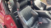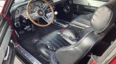 Originally finished in Acapulco Blue (D5), the car was refinished in burgundy with white stripes in the early 2000s following the addition of Shelby-style front and rear fascias, a fiberglass hood with an integrated scoop and hold down pins, side air intakes, and a custom fiberglass decklid and rear spoiler. The trunk floor was replaced in 2018. Additional equipment includes Shelby badges and side stripes, grille-mounted driving lights, LED taillights, and red underside lights.