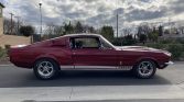 This 1968 Ford Mustang Fastback was modified in the style of a GT350 in the early 2000s and underwent a mechanical refreshment in 2018. Work included rebuilding the four-speed manual transmission, replacing the clutch assembly, flywheel, and steering column, performing electrical repairs, and installing a power-assisted rack and pinion steering gear along with Hotchkis suspension components. The car is finished in burgundy with white stripes over a black interior, and power is provided by a 302ci V8 that has been modified with an Edelbrock intake manifold, tubular headers, and a dual exhaust system with Flowmaster mufflers. Additional modifications include polished Torq Thrust wheels, ProCar bucket seats, a roll bar, and a Hurst shifter.