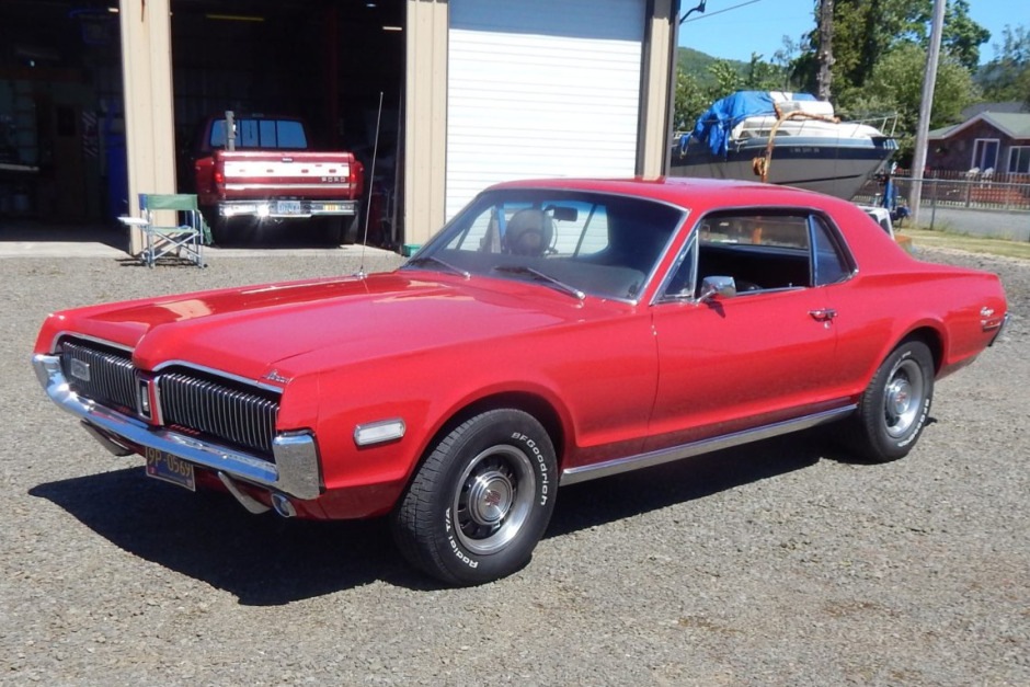 This 1968 Mercury Cougar is finished in red over black vinyl and is powered by a replacement 302ci V8 paired with a three-speed automatic transmission. Additional features include hideaway headlights, LED tail lights, and an aftermarket CD stereo. The seller states that the car was refurbished prior to his 2008 acquisition was subsequently stored for approximately 10 years before being refreshed again in 2020.