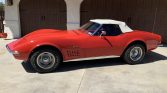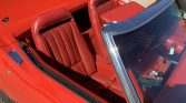 Fiberglass bodywork was factory finished in Mille Miglia Red (973) and is said to have been repainted during the refurbishment. Exterior features include a white soft top, pop-up headlights, and dual exhaust outlets.