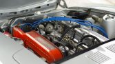The 2.4-liter inline-six was reportedly rebuilt along with the carburetors during prior ownership, and modifications are said to include a Schneider Racing camshaft, electronic ignition, K&N air filters, and an aluminum radiator, along with heat-wrapped headers and an aftermarket exhaust system with an Abarth muffler. The clutch was bled and an oil change was performed in preparation for the sale.