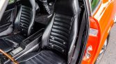 The car is said to have been originally painted red and was refinished in its current shade of orange under previous ownership in 2000. Exterior details include a driver-side mirror, bright bumpers and trim, European-style taillights, and a polished exhaust tip.