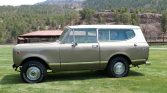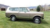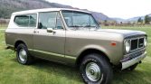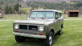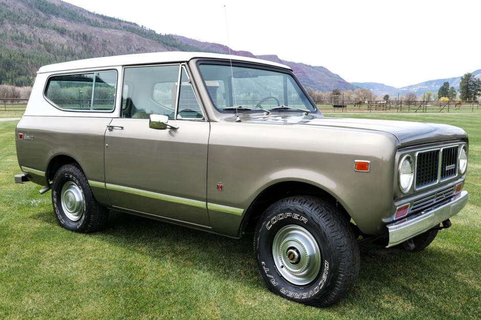 This 1973 International Harvester Scout II is finished in brown over white cloth and vinyl and is powered by a 345ci V8 paired with a three-speed automatic transmission and a two-speed transfer case. Features include a white removable hardtop, 15″ wheels, a locking front axle, dual chrome side mirrors, and air conditioning.