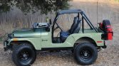 This 1973 Jeep CJ-5 is finished in green with a black soft top over black vinyl, and power is provided by a fuel-injected 258ci inline-six paired with a four-speed manual transmission. Equipment includes a dual-range transfer case, manually locking front hubs, 15″ American Racing wheels, steel front and rear bumpers, a Warn winch, a rear tire carrier with jerry-can holders, a 2.5″ BDS suspension lift, LED lighting, full soft doors, a CB radio, and a six-point roll…