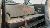The front bucket seats and rear bench are trimmed in gray cloth with black vinyl sides and backs. Amenities include an analog clock and lap belts.
