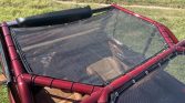 Work during the 2019 body-off refurbishment reportedly included stripping the old finish, replacing corroded panels with new sheet metal, application of bedliner on the inside of the tub, replacing the inner and outer front fenders, installing a body-color roll cage with sunshades, installing new weatherstripping and glass, and applying an epoxy primer before applying the dark red base coat and clear coat. Additional exterior features consist of black fender flares, an aftermarket front bumper with a Warn winch, a rear swing-away tire carrier, and aftermarket lighting.