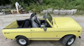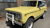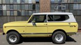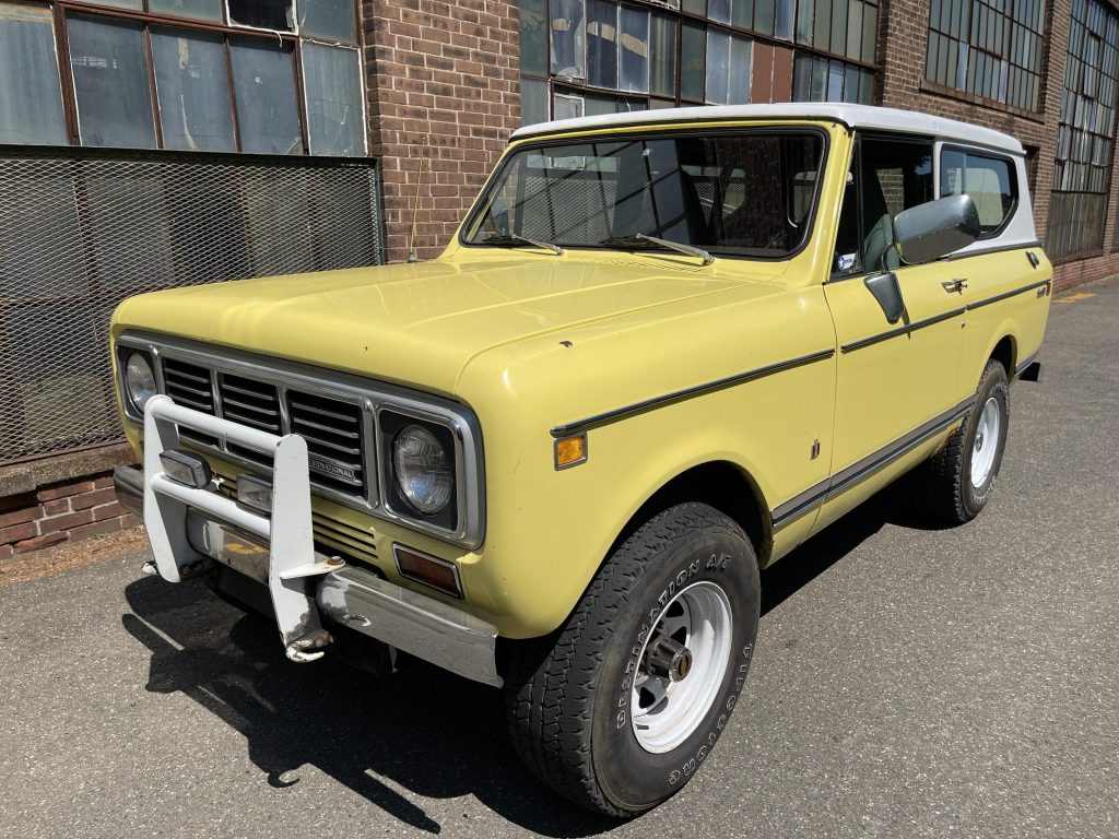 This 1976 International Harvester Scout II is finished in yellow with a removable white steel roof, and power is provided by a rebuilt 304ci V8 paired with a four-speed manual transmission and a dual-range transfer case. Equipment includes a bull bar, driving lights, three-point front seatbelts, a padded roll bar, 15″ wheels with 31″ tires, and a Pioneer CD stereo. The truck was purchased by its current owner in 2009 and was recently relocated to Connecticut by the seller.