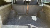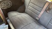 The cabin features replacement front bucket seats and a rear bench upholstered in gray, along with black carpets and door panels. Equipment includes a padded roll bar, aftermarket front three-point seatbelts, and a Pioneer CD stereo hooked to aftermarket speakers.
