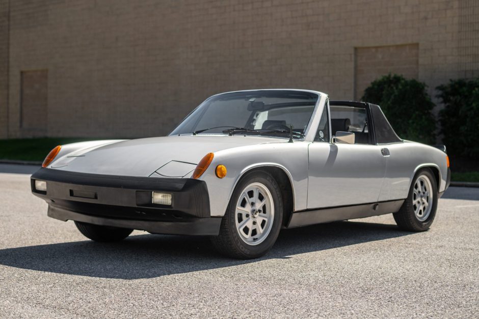 This 1976 Porsche 914 2.0 is finished in metallic silver over black tartan upholstery, and it is powered by a 2.0-liter flat-four paired with a five-speed manual transaxle. Equipment includes a removable roof panel, 15″ Fuchs wheels, and an aftermarket stereo with Bluetooth connectivity. The car was acquired by the seller in March 2020, and work performed under current ownership has reportedly included timing adjustments, an ignition tune-up, and the installation of Bilstein shock absorbers, Ground Control rear coilovers, and a 930 Turbo tie rod kit. Additional reported service included replacement of the pedal bushings, exhaust system, fuel pump, fuel injectors, oil cooler, engine mounts, throttle and clutch cables, rubber seals, door panels, seat upholstery, brake master cylinder, brake pads and rotors, valve cover gaskets, sway bar bushings, vacuum hoses, and shifter coupling bushings.