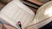 The cabin was reupholstered under prior ownership and features seats trimmed in beige with tan piping, matching door panels, and a tan dashboard and carpets. Equipment includes air conditioning, a lockable glovebox, an analog clock, and a Marantz digital AM/FM/cassette radio.