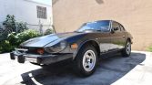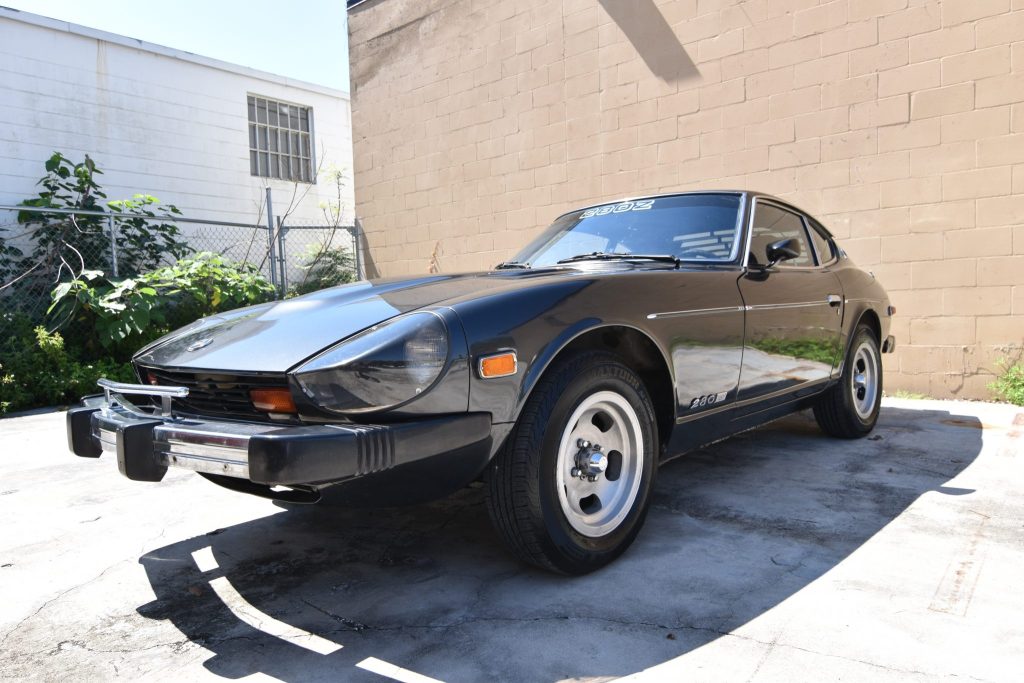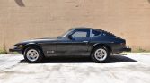 This 1978 Datsun 280Z is finished in metallic dark gray over black vinyl and is powered by a 2.8-liter inline-six paired with a five-speed manual transmission. Equipment includes 14″ alloy wheels, an aftermarket Pioneer CD stereo, rear window louvers, chrome impact bumpers, and a factory tool kit.