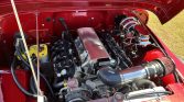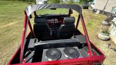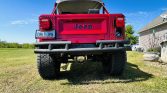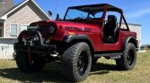This 1978 Jeep CJ-7 was refinished in red metallic and fitted with a 5.3-liter GM V8 that is equipped with an ICT Billet intake manifold, a CVF Racing serpentine system, Hedman exhaust headers, and a Borla dual exhaust system. Power is sent to the rear or all four wheels through a three-speed TH350 automatic transmission and a dual-range transfer case, and additional features include power steering, power-assisted front disc brakes, gloss black 20″ Fuel Stroke wheels, double tube bumpers, iArmor side steps, LED exterior lighting, a Smittybilt XRC winch, a roll bar, and a black bikini top. The interior has been outfitted with black leather and microsuede Sparco GT bucket seats, air conditioning, a B&M Pro Ratchet shifter, a Pioneer touchscreen head unit, aftermarket speakers, Recoil Audio subwoofers, and AutoMeter instrumentation.
