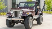 This 1981 Jeep CJ-5 was reportedly acquired by the seller from the original owner in 2009, and a subsequent refurbishment involved a repaint in dark red metallic, a reupholstered black interior, and the installation of a replacement 304ci V8 which is mated to a three-speed manual transmission and a dual-range transfer case. Equipment includes a Surrey top, removable doors, an aftermarket stereo, a lift kit, and 15″ alloy wheels with 33″ tires.