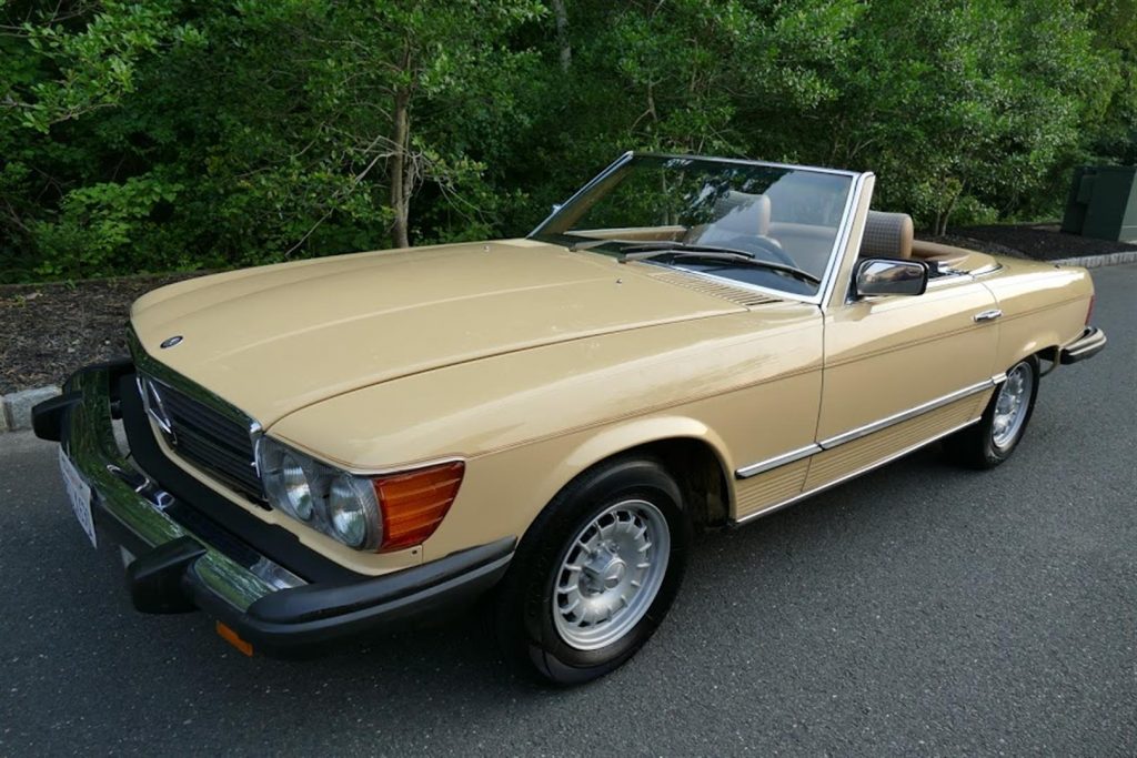This 1982 Mercedes-Benz 380SL is finished in cream over a tan and plaid upholstery and is powered by a 3.8-liter V8 mated to a four-speed automatic transmission. Features include 14″ Bundt alloy wheels, a body-color removable hardtop, a black convertible top, burl wood trim, air conditioning, and a Becker radio. The car was acquired by its current owner in 2018 following time spent in Texas and California, and it now shows 86k miles. The timing chain and tensioners were reportedly replaced within the last 1k miles, and additional maintenance during current ownership is said to include refinishing the wheels and replacement of the tires and fuel system, braking, and suspension components.
