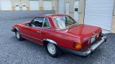 This 1983 Mercedes-Benz 380SL was acquired by the current owner in 1991 and is finished in Signal Red over beige leather. The car is powered by a 3.8-liter V8 paired with a four-speed automatic transmission, and additional equipment includes a removable hardtop, a rear seat, European-market headlights, 14″ Bundt wheels, automatic climate control, and a Blaupunkt cassette stereo.
