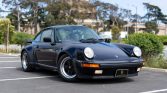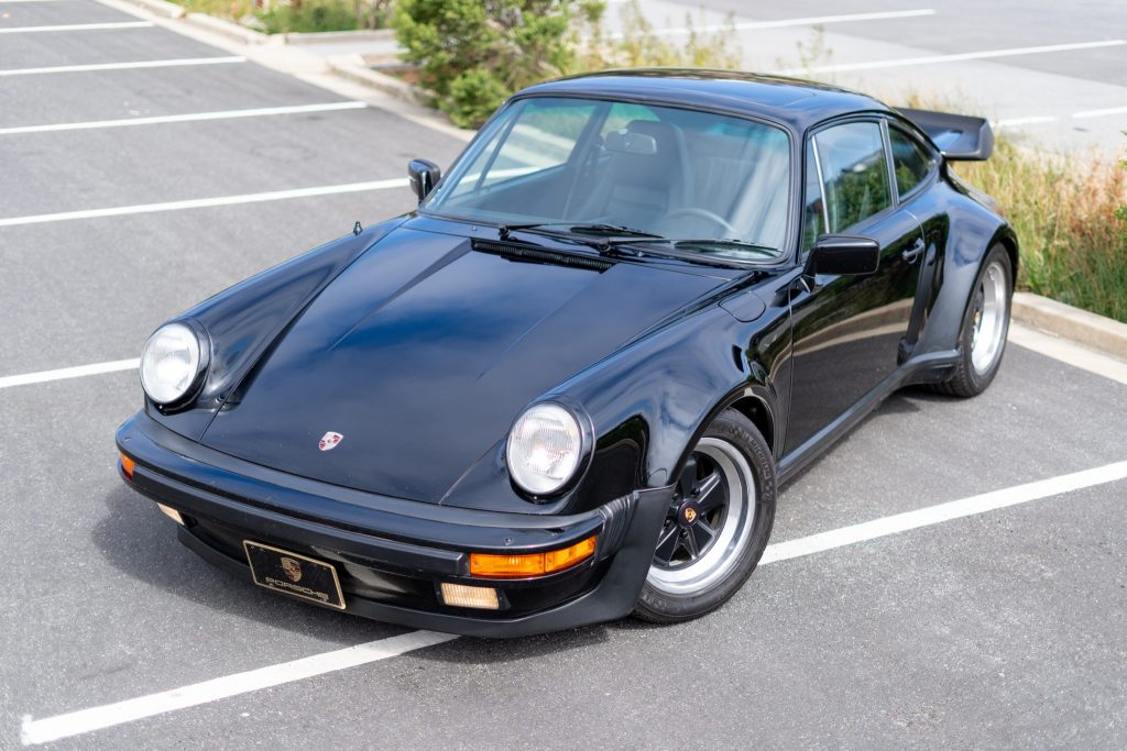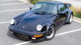 This 1984 Porsche 911 Carrera coupe was optioned with the M491 “Turbo Look” package, which added front and rear spoilers as well as wider rear bodywork. Finished in black over black leather upholstery, the car is powered by a 3.2-liter flat-six paired with a 915 five-speed manual transaxle and an optional limited-slip differential. Equipment includes 16″ Fuchs alloy wheels with body-color centers as well as a power-operated sunroof, front sport seats, cruise control, a MOMO Steering Wheel, air conditioning, and a Porsche Classic Communication Management (PCCM) head unit.