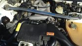 Fuchs 16″ wheels feature black centers and polished lips and wear Kumho tires. Stopping power is provided by anti-lock disc brakes with four-piston calipers all around, and Koni adjustable shocks are fitted along with a Racing Dynamics front strut tower brace.