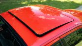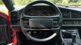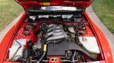 The car is finished in Guards Red and was optioned with a tilting and removable sunroof. Exterior details include pop-up headlights, fog lights, a rear wiper, and a rear spoiler.