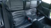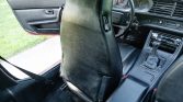 The front bucket seats are upholstered in black leather and are accompanied by color-coordinated split-folding rear seats, dashboard, center console, and door panels. Additional appointments include air conditioning, cruise control, power windows, and a JVC AM/FM stereo with Bluetooth connectivity. The air conditioning drier was replaced in 2024 and the system was converted to R134a refrigerant.