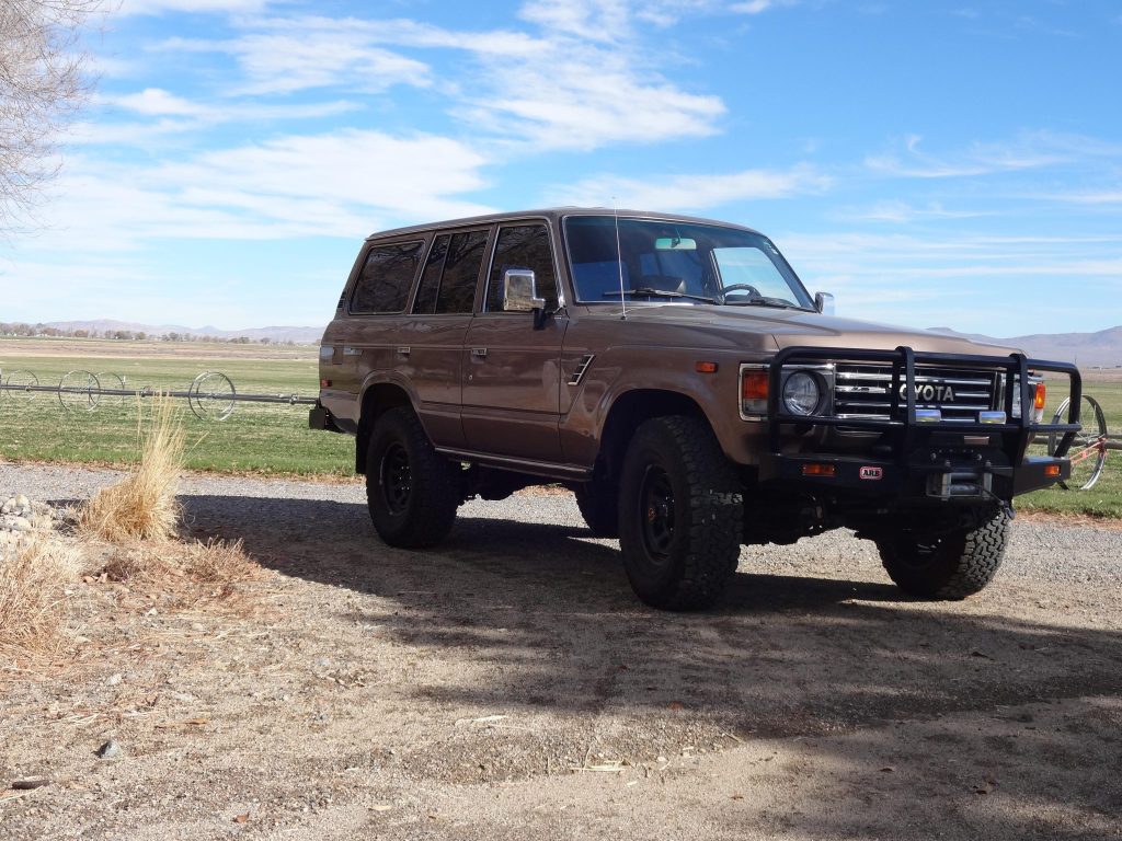 This 1986 Toyota Land Cruiser FJ60 spent time in California and later relocated to Nevada following the acquisition by the seller in December 2014. Work performed in 2007 by TLC of Van Nuys, California included an overhaul of the air-conditioning system, repair of the front seats, installation of 16″ steel wheels, aftermarket bumpers, Hella H4 headlights, PIAA fog lights, and Old Man Emu suspension components, rebuilds of the five-speed manual transmission and dual-range transfer case, and fitting a rejetted carburetor, a tubular header, and a performance exhaust system to the 4.2-liter inline-six. The truck is also equipped with an Alpine stereo, Aisin manually locking hubs, tinted windows, and auxiliary gauges.