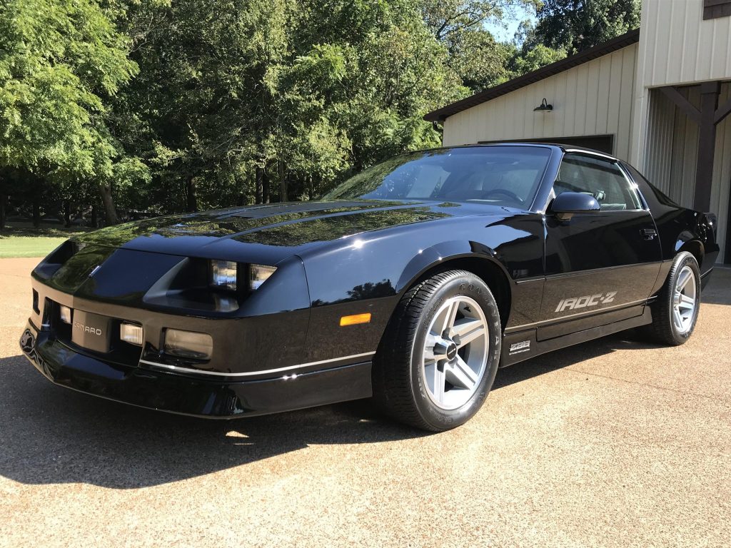 This 1987 Chevrolet Camaro IROC-Z is a black-over-gray coupe that was first delivered to Reichert Chevrolet & Buick in Illinois, and it is said to have remained with its original owner for 21 years and was purchased by the seller in 2018. The car is powered by an optional fuel-injected 5.7-liter V8 paired with a four-speed automatic transmission and a limited-slip differential, and additional equipment includes removable T-top roof panels, power windows and locks, air conditioning, cruise control, a power-adjustable driver’s seat, a Delco-Bose cassette stereo, 16″ alloy wheels, four-wheel disc brakes, fog lights, and front and rear spoilers.