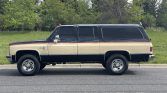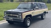 This 1987 Chevrolet Suburban 2500 Silverado 4×4 is finished in black and pale yellow over tan vinyl, and power is from a fuel-injected 350ci V8 paired with a four-speed automatic transmission and a dual-range transfer case. Equipment includes 16″ chrome-finished wheels, air conditioning, power steering, cruise control, upgraded audio, and power windows and locks. The truck was first registered in Tennessee and remained there until its acquisition in 2021 by the selling dealer. This Suburban 2500 is now…