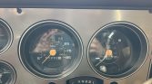 A tilt-adjustable steering wheel frames factory instrumentation including an 85-mph speedometer and gauges for voltage, oil pressure, coolant temperature, and fuel level. The five-digit odometer shows 53k miles. The brown dashboard is cracked and missing trim and features a top-mounted compass.