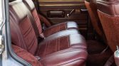 The cabin features power-adjustable front bucket seats trimmed in burgundy leather with cloth inserts along with a matching dashboard, rear bench, door panels, and carpeting. Amenities include air conditioning, cruise control, power accessories, and a cassette player.