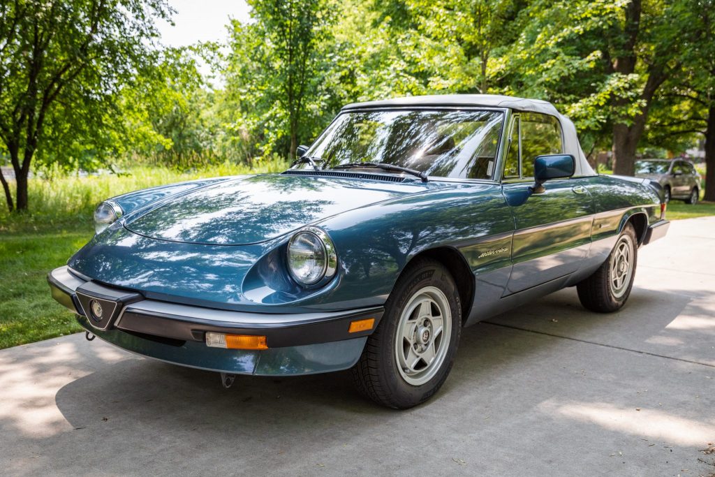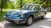 This 1989 Alfa Romeo Spider Veloce is finished in Stellar Blue over tan leather and is powered by a twin-cam 2.0-liter inline-four mated to a five-speed manual transmission. Equipment includes a gray convertible top, 14″ alloy wheels, an Ansa exhaust, power windows, and a Panasonic cassette stereo. Registered in Minnesota since new, the car was purchased in 1994 by the seller who has since driven it 53k of its 58k indicated miles.