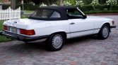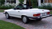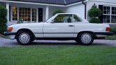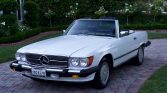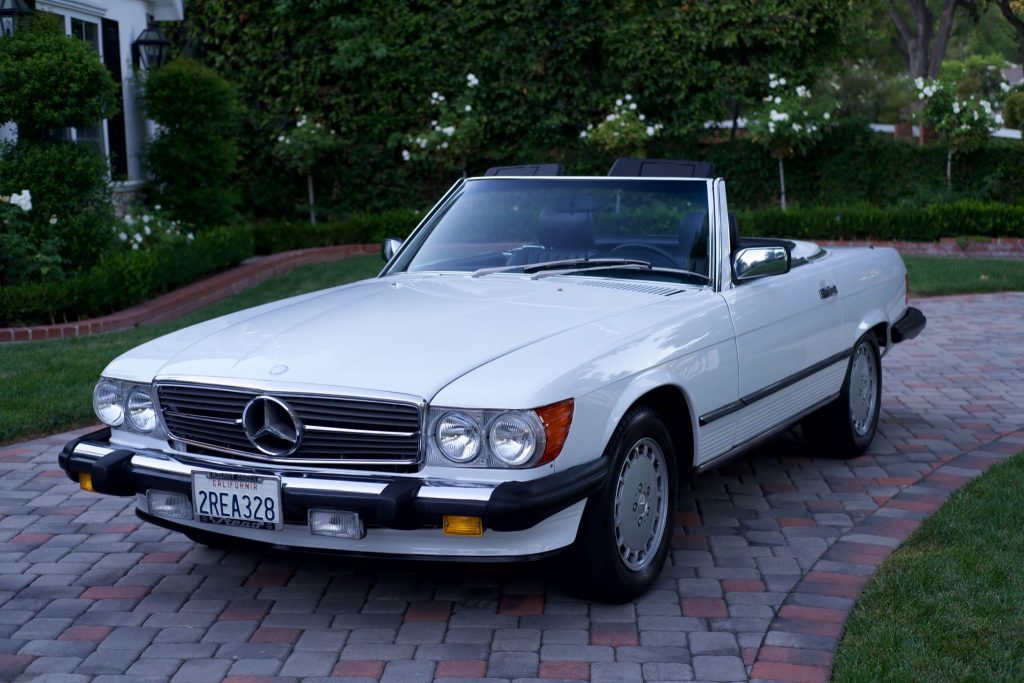 This 1989 Mercedes-Benz 560SL is finished in Arctic White over black leather and is powered by a 5.5-liter V8 paired with a four-speed automatic transmission. Equipment includes a body-colored removable hardtop and a black soft top as well as 15″ Gullideckel wheels, fog lights, automatic climate control, a Becker Grand Prix AM/FM/cassette stereo, and an alarm system. Subsequent service has included the replacement of suspension components, the rear brakes, the HVAC control unit, and intake manifold gaskets.