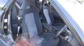 R34 Skyline-sourced 18″ alloy wheels are finished in dark grey and mounted with 245/40 Hankook Ventus RS-3 tires. Standard equipment includes Super HICAS four-wheel steering, and the seller reports that the brake pads and cross-drilled rotors were replaced during current ownership.