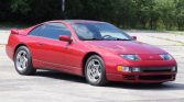 This 1991 Nissan 300ZX is finished in Cherry Red Pearl over a Charcoal leather and cloth interior, and it is powered by a twin-turbocharged 3.0-liter V6 paired with a five-speed manual transmission and a limited-slip differential. Additional equipment includes removable glass T-top roof panels, a power-adjustable driver’s seat, automatic climate control, cruise control, a Panasonic head unit, a Bazooka subwoofer, HICAS four-wheel steering, driver-adjustable shock absorbers, and chrome-finished 16″ alloy wheels. The car was first registered in California and later spent time in New Mexico and Michigan before being acquired by the current owner in 2021. Replacement accessory belts, tires, and front brake rotors and pads were reportedly installed in preparation for the sale.