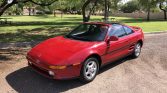 This 1991 Toyota MR2 Turbo is finished in Crimson Red over black leather and is powered by a turbocharged 2.0-liter inline-four mated to a five-speed manual transaxle. Additional features include glass T-top panels, a period Motorola car phone, air conditioning, power steering, cruise control, and a CD/cassette stereo.