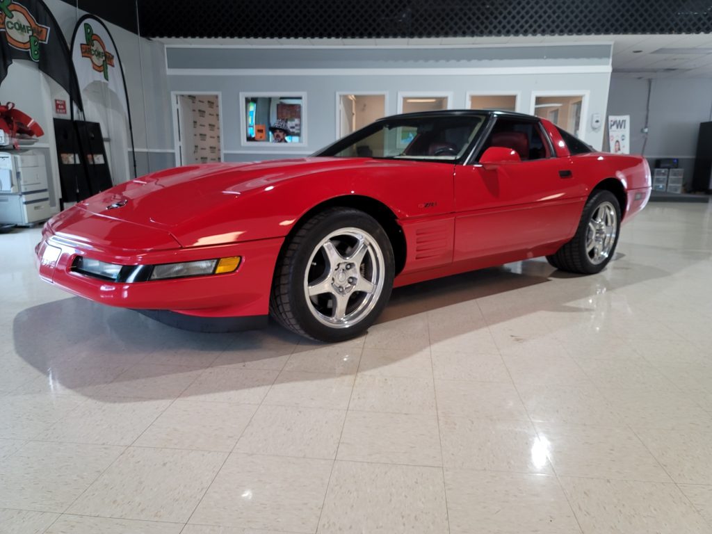 This Chevrolet Corvette ZR-1 is one of 502 produced for the 1992 model year and was acquired by the seller in September 2020. The car is powered by a 5.7-liter DOHC V8 paired with a six-speed manual transmission and finished in Bright Red over red leather. Features include the FX3 Selective Ride and Handling package, a transparent removable roof panel, power-adjustable sport seats, automatic climate control, and a Delco Bose CD/cassette stereo. The fuel injectors were replaced…